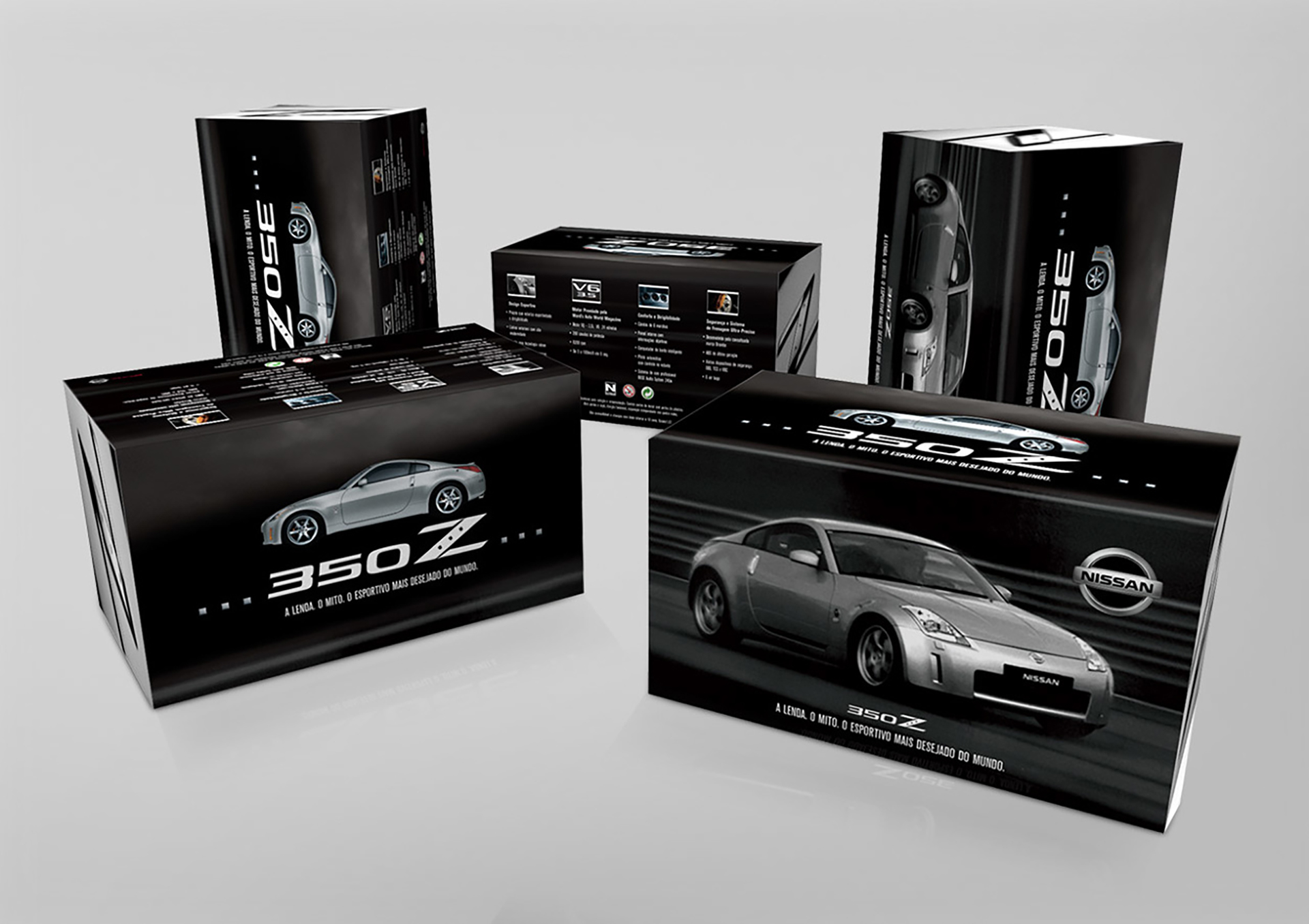 Mala direta enviada a consumidores premium convidando para um test drive com o Nissan Z350. No interior, uma miniatura do carro de brinde.